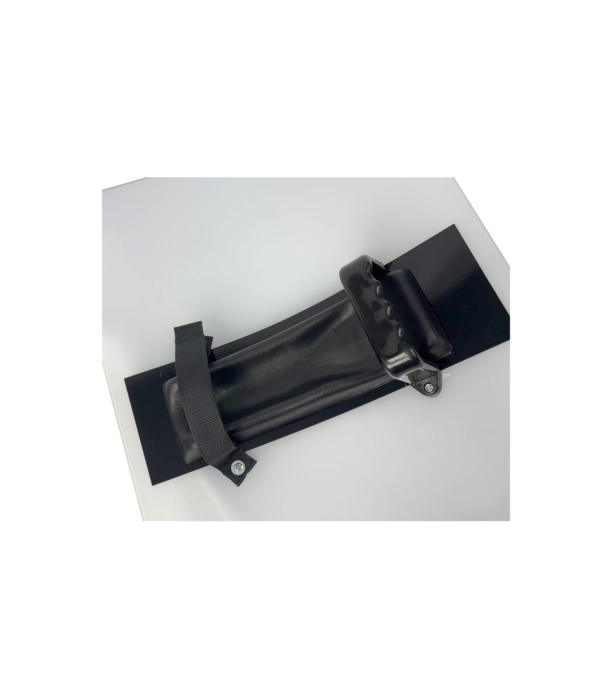 - Ambidextrous Handle System: The shield can be easily configured by the user for right or left-hand use. It includes an ergonomic handle with finger grooves and a non-conductive polypropylene grip, complemented by an adjustable Velcro forearm strap that allows for quick release if needed.
