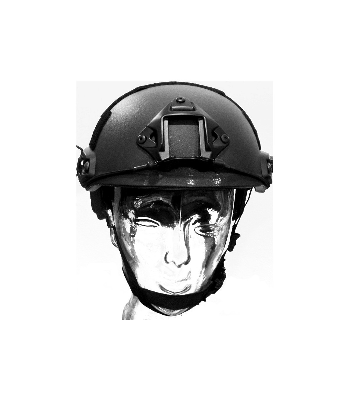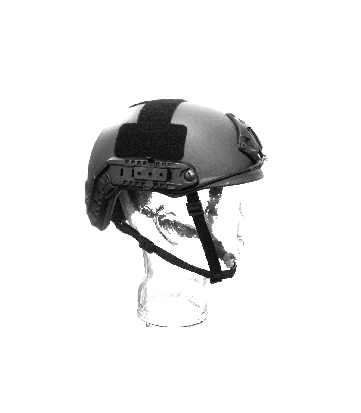 El casco se fabrica mediante un sistema “composite” propio de prensado de tejido aramida y resina, que le otorga un excelente peso, protección balística y de impactos y retardante al fuego.