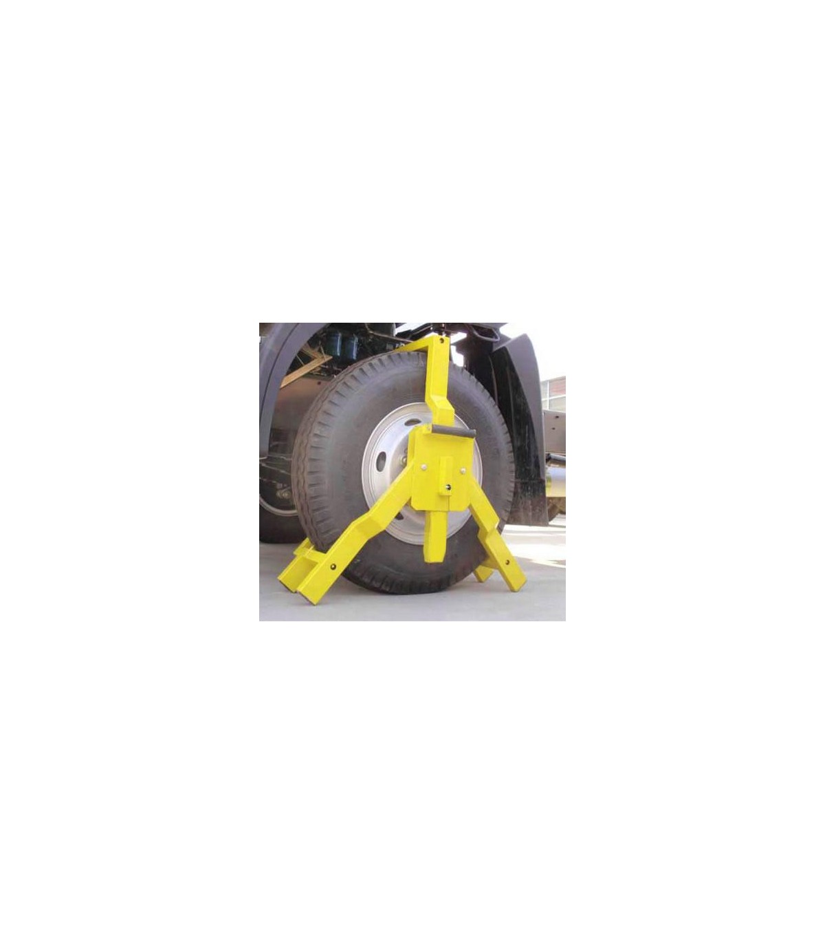 Inmovilizador de alta seguridad para camiones, autobuses y vehículos pesados. Fabricado en acero de 5mm, se instala rápidamente sin herramientas gracias a su manivela. Su sistema anti-manipulación "Hook-Lok" y el pincho interior anti-movimiento garantizan un bloqueo total. Para ruedas de 900 a 1500mm de diámetro.