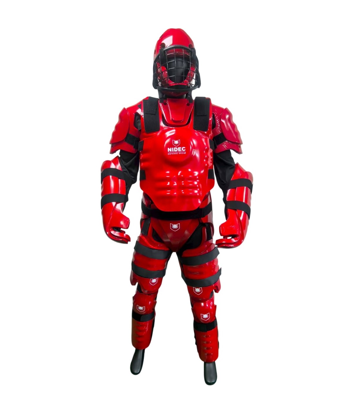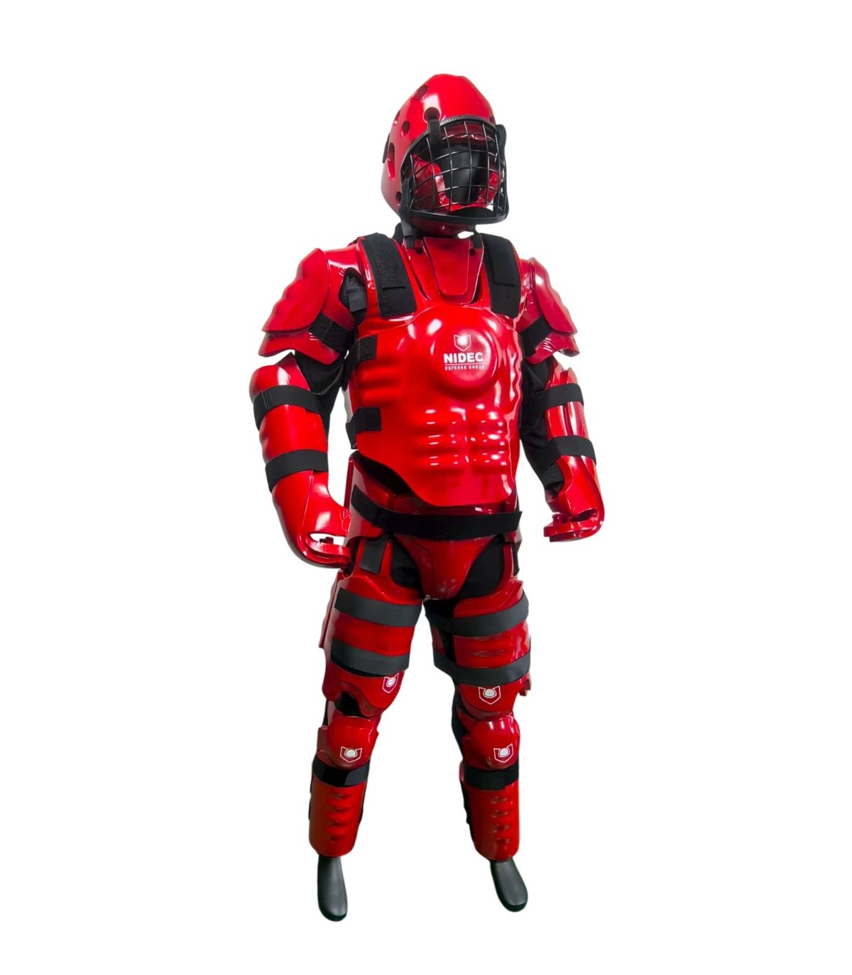 - Talla Única Adaptable: Mediante un sistema de cintas de velcro amplias y robustas, el traje se ajusta perfectamente a usuarios desde 1,65m hasta 1,90m de altura, impidiendo movimientos indeseados de las placas durante el combate.