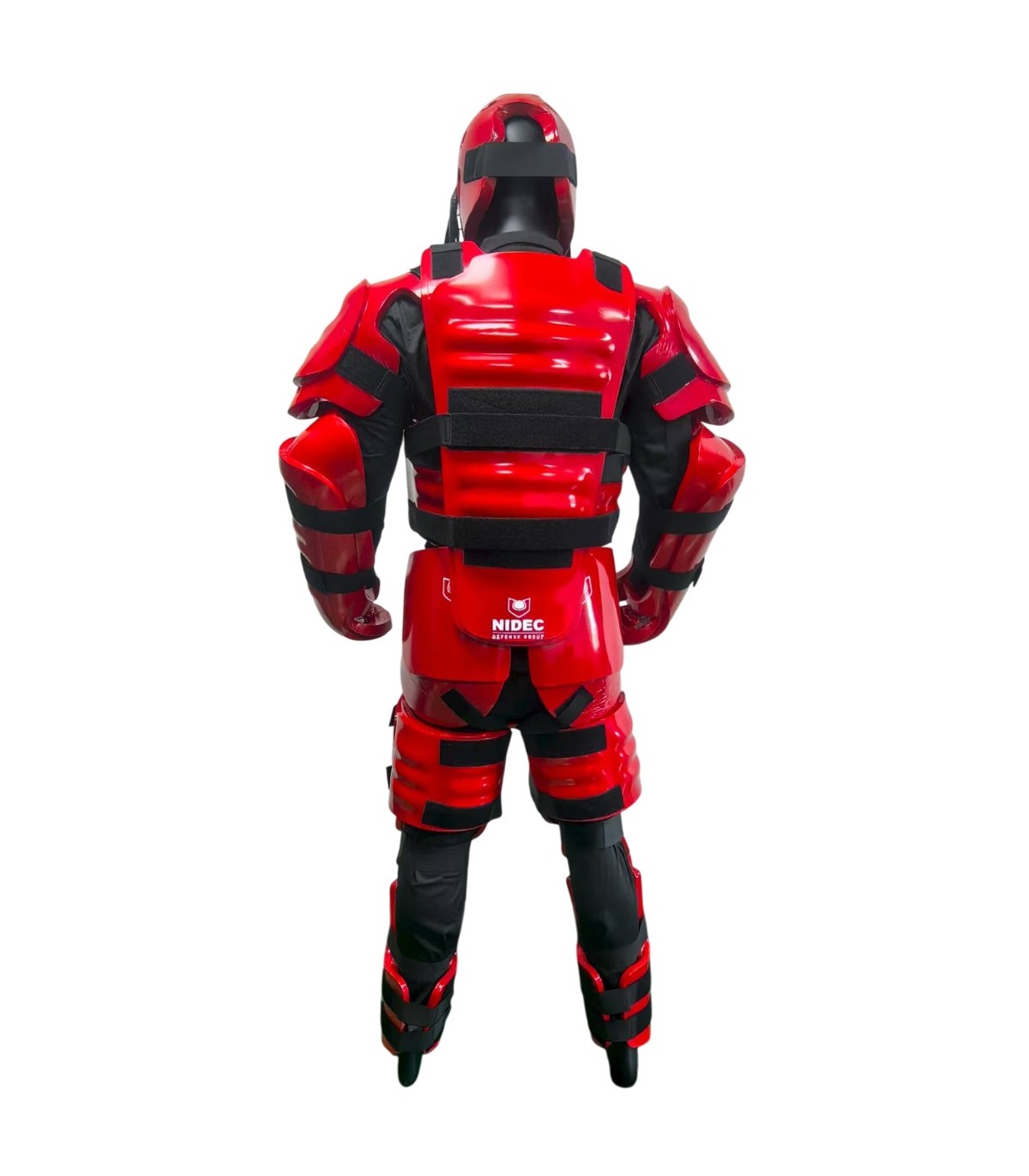 - Espuma DMFP de Alta Densidad: El núcleo del traje está fabricado en una espuma técnica con efecto memoria que absorbe y disipa la energía de los impactos contundentes, recuperando su forma original instantáneamente.